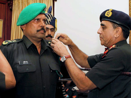 Ace shooter Abhinav Bindra at the rank of Lieutenant colonel in the Indian army (Sikh Regiment) serving in the Territorial Army inducted in 2011.